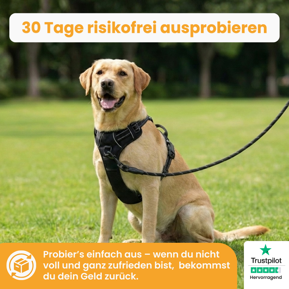 Ăber 25.000 Hundebesitzer vertrauen bereits auf entspanntere SpaziergĂ€nge mit mehr Kontrolle â dank dem GassiHeldÂź Anti-Zieh-Geschirr.